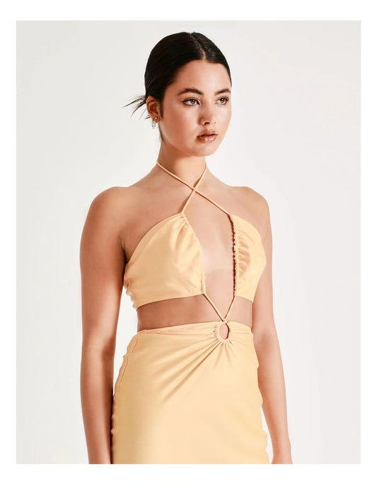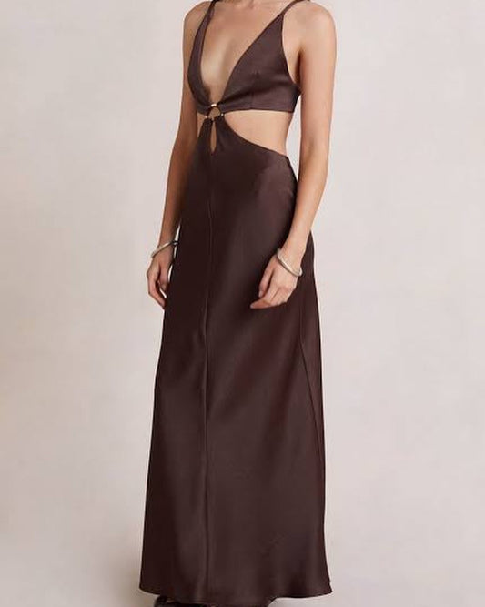 Miss Shop Cut Out Satin Maxi - cosmic sky